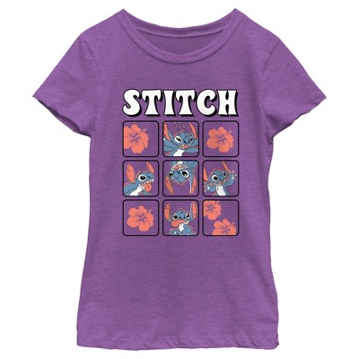Girl's Lilo & Stitch Blue Square Portrait Stitch T-Shirt