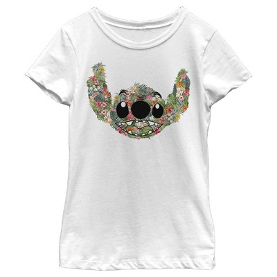 Girl's Lilo & Stitch Floral Distressed Stitch T-Shirt