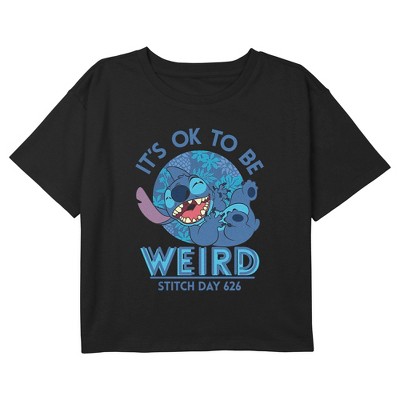 Girl's Lilo & Stitch It’s Ok to Be Weird Graphic Graphic Cropped T-Shirt