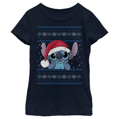 Girl's Lilo & Stitch Santa Hat Ugly Sweater T-Shirt