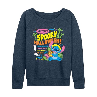 Women's - Lilo & Stitch - Stitch's Spooky Halloween Lightweight French Terry Wide Neck Long Sleeve Graphic Shirt