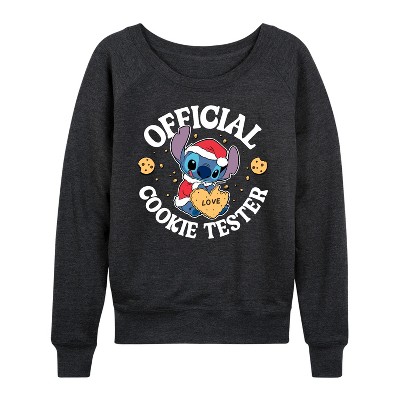 Women's - Lilo & Stitch - Sandy and Bright Christmas Lightweight French Terry Wide Neck Long Sleeve Graphic Shirt