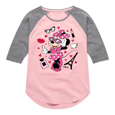 Girls' - Disney - Minnie Stacked Shirt Tail Raglan Graphic T-shirt