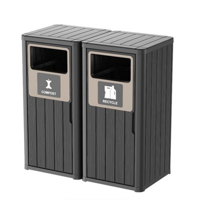 Gulches 2×80L Outdoor Waste Bin with Double-Bucket, Wood Design, Double Lid & Fluid Tray, Weather-Resistant, Fits 30-39 Gal Bags