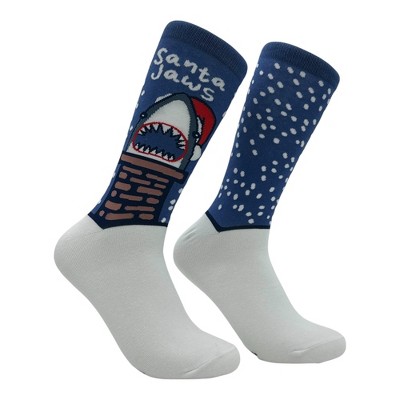Crazy Dog Men's Santa Jaws Socks Funny Sarcastic Christmas Graphic Novelty Shark Footwear for Men