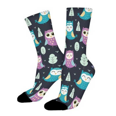 Night Owl Women Printed Crew Socks Funny Funky Socks Soft Polyester Novelty Gifts for Artists Men