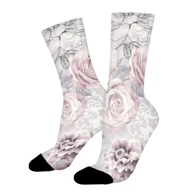Chickens Floral Women Printed Crew Socks Funny Funky Socks Soft Polyester Novelty Gifts for Artists Men