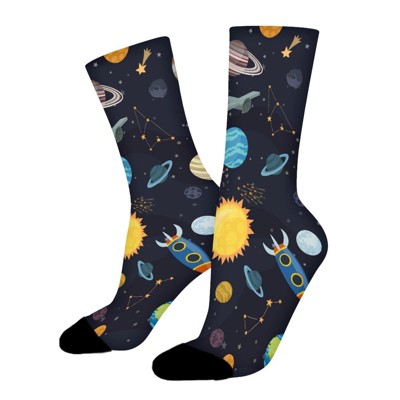 Rocket Planet Print Women Printed Crew Socks Funny Funky Socks Soft Polyester Novelty Gifts for Artists Men