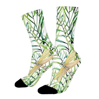 Dragonflies In The Swamp Women Printed Crew Socks Funny Funky Socks Soft Polyester Novelty Gifts for Artists Men