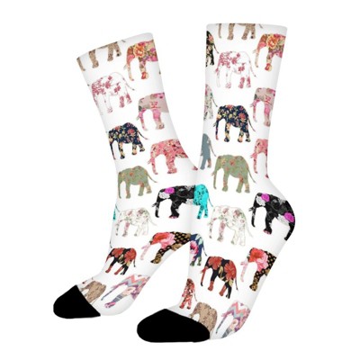 Floral Elephants Women Printed Crew Socks Funny Funky Socks Soft Polyester Novelty Gifts for Artists Men