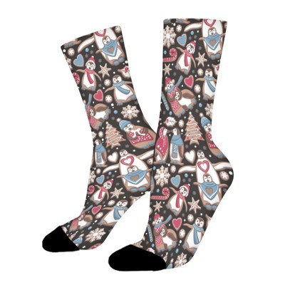 Dsane Penguin Christmas Gingerbread Women Printed Crew Socks Funny Funky Socks Soft Polyester Novelty Gifts for Artists Men
