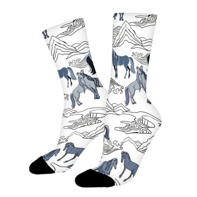 Horse Landscape Foal Women Printed Crew Socks Funny Funky Socks Soft Polyester Novelty Gifts for Artists Men
