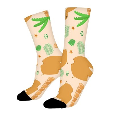 Camel And Palm Tree Women Printed Crew Socks Funny Funky Socks Soft Polyester Novelty Gifts for Artists Men