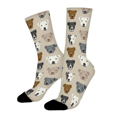 Pitbull Heads Women Printed Crew Socks Funny Funky Socks Soft Polyester Novelty Gifts for Artists Men