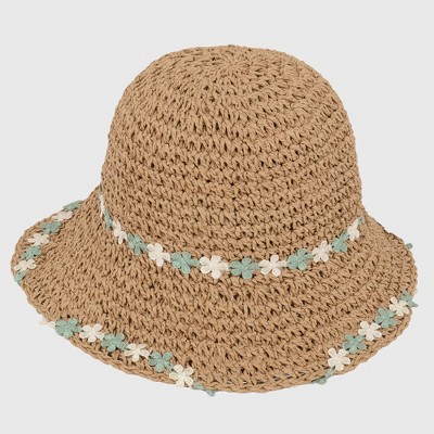Anna-Kaci Women's Knit Straw Bucket Hat with Chin Strap