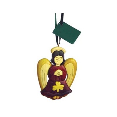 Slickblue Wooden Irish Angel Ornament, Intarsia Design, Hanging Decor, Celtic Style, 4.33"x2.75"