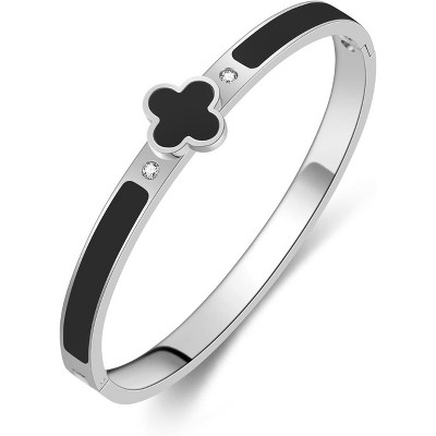 Chisel Stainless Steel Polished Black IP-plated Crystals Cuff Bangle