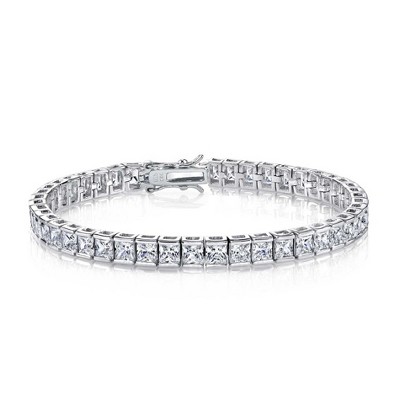Guili Sterling Silver Rhodium Plated with Clear Marquise Cubic Zirconia Three-Row Horizontal Bracelet, Stunning Design with Sparkling Stones