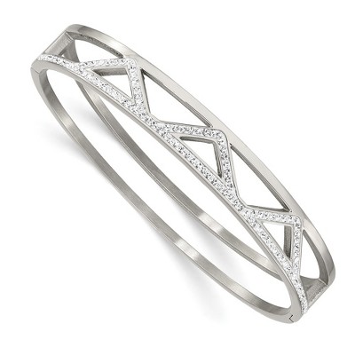 Chisel Stainless Steel Polished Preciosa Crystal 10mm Hinged Bangle