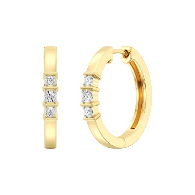 GILDED 1/6 ct t.w. Lab-Grown Diamond Three-Stone Channel Bar Huggie Hoop Earrings in 14KT Gold Plated Silver