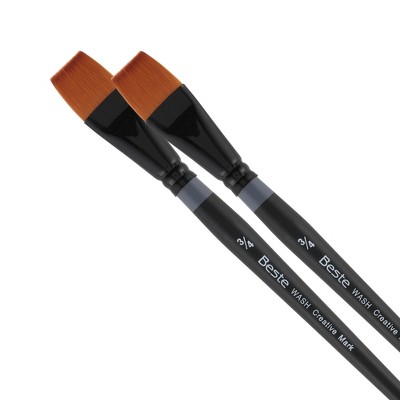 Creative Mark Beste Golden Taklon Wash 3/4" - 2 Pack Artist Brush, Professional Watercolor Brushes, For Acrylic Painting, Short Handle, Sharp Edges,