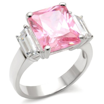 Slickblue Women's Stainless Steel Ring with Clear CZ Three-Stone Design, Polished Finish, Size 5-10