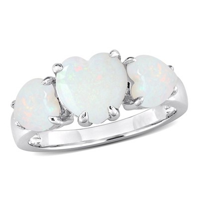 EVERLY JEWELRY | Sterling Silver 2 1/5 CT TGW Opal 3-Stone Heart Ring