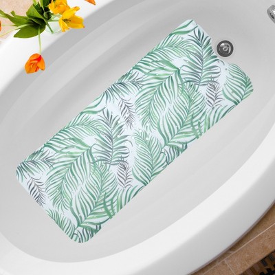 Unique Bargains Bath Mat with Suction Cups and Drain Holes White Green 1 Pc