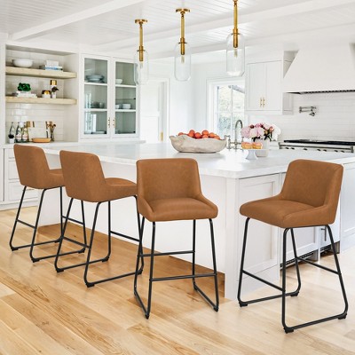 DYHOME Bar Stools Set of 4, 24 Inches Counter Height Kitchen Bar Stools with Back, Modern Metal Tall Bar Stools for Kitchen Island