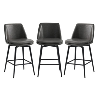WARMOUNTS Set of 3 Upholstered Swivel Counter Height Barstool