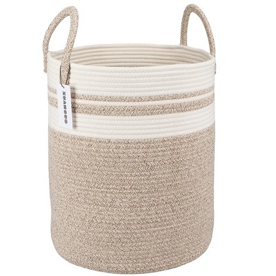 Aoibox 11 Inch Cube Storage Bins Woven Cotton Rope Baskets for Shelves Organizing Toys Nursery Square Brown 3 Pack