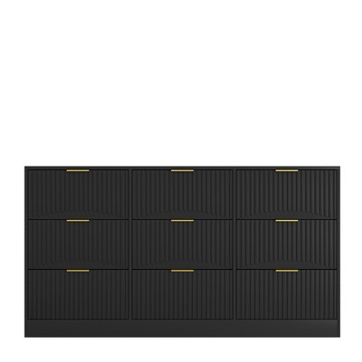 Gulches 63" Black 9-Drawer Dresser with Wavy Pattern Panels & Golden Handles - Large Deep Wooden Storage Cabinet
