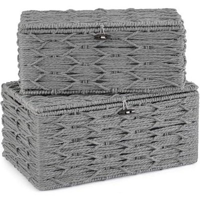 Aoibox Small Wicker Storage Baskets Square Decorative Organizer Set of 3 Recycled Paper Rope with Handles for Shelves