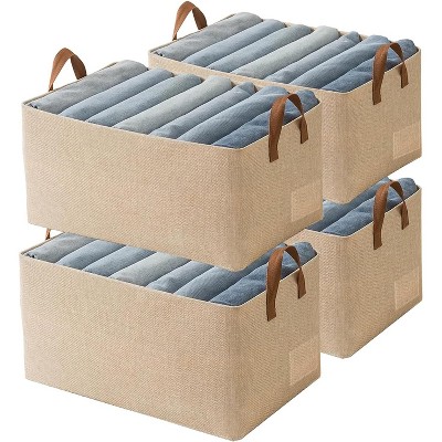 Aoibox Large Foldable Fabric Storage Bins with Lids 26L Sturdy Closet Boxes 3 PU Handles Labels Grey Black 3 Pack