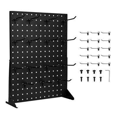 VEVOR Pegboard Display Stand, 17 x 13 Inch Tabletop Pegboard Display Stand with 15 Hooks, Thickened Cold-Rolled Steel Peg Board Panel, Black (1 PCS)