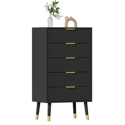 5 Drawer Dresser for Bedroom, Wood Storage Dresser Chest Cabinet Organizer Unit, Small Fluted Nightstands for Bedroom