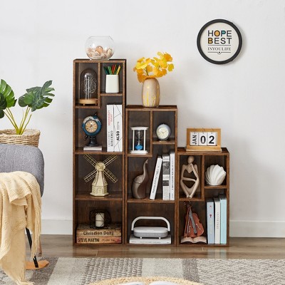 Home Office 10 Cubes Bookshelf, Wooden 3-Tier Open Shelf Bookcase, Freestanding Book Shelf Storage Organizer w/ 5 Iron Legs