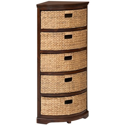 eHemco Hampton Meadows 5 Tier X-Side Corner Storage Drawers with 5 Wicker Baskets