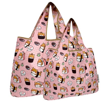 Wrapables Large & Small Foldable Nylon Reusable Shopping Bags (Set of 2), Alligators