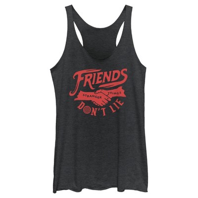 Women's Stranger Things Friends Don't Lie Handshake Racerback Tank Top