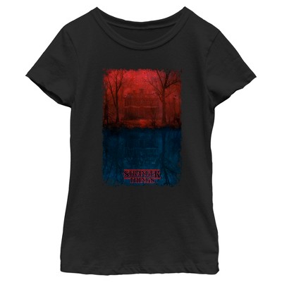 Girl's Stranger Things Retro The Monster and The Superhero Poster T-Shirt