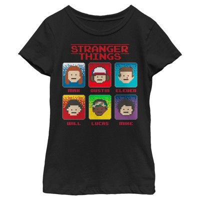 Girl's Stranger Things Group Shot 8-Bit Box Up T-Shirt