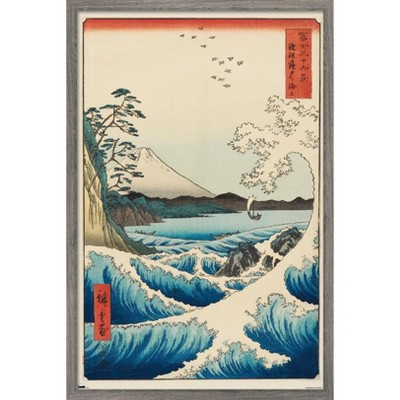 Trends International Hiroshige - The Sea at Satta Framed Wall Poster Prints