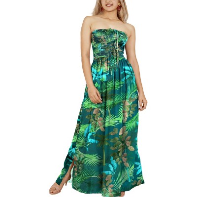 LA LEELA Women's Tube Dress Boho Maxi Flowy One Size Blood Tropical