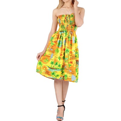 LA LEELA Women's Tube Dress Top Dress Evening One Size Yellow Island