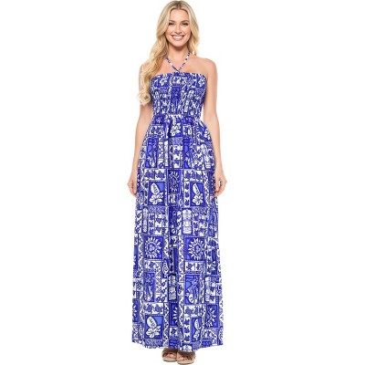 LA LEELA Womens House Daily Routine Evening Wear Boho Strapless Casual Dresses Evening Long Tube Top Maxi Casual Dress for Women One Size Blue Floral