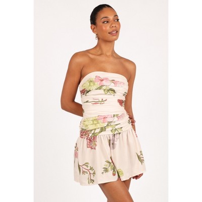 Coolmee Women's Floral Tube Mini Dress Strapless Backless Party Club Short Ruched Bodycon Dresses
