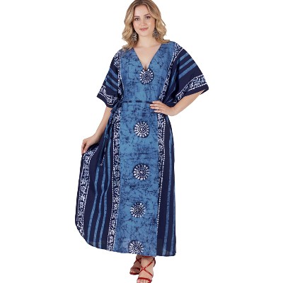 LA LEELA Women's Summer Batik Caftan House Dashiki Dress Kaftan Loungewear Nightshirts for Women Sleepwear Plus size 2X-3X Brown, Tie Dye Design