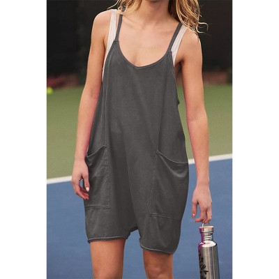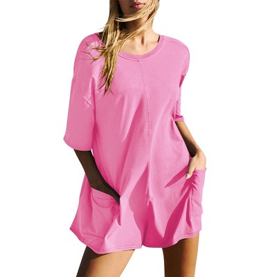 Rompers for Women Casual Short Sleeve Oversized Athletic Workout Reversible Hot Shot Tee Romper Deep Pockets