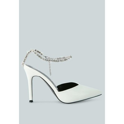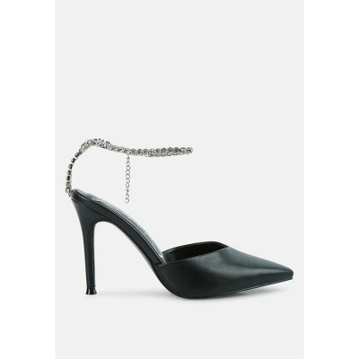 BLISSFUL STEP Women's Open Toe Rhinestone Strappy Ankle Strap Stiletto Heels Sandals